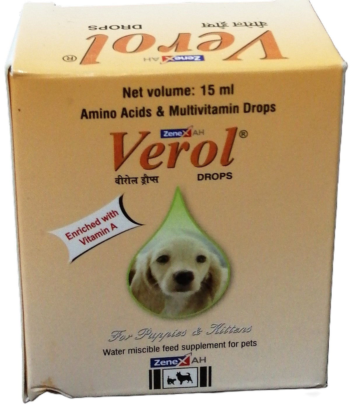 Verol Drops is growth enhancing supplement contains amino acids and vitamins. The nutrients support growth and development in young pets. The platable supplement improves their immune response, reducing susceptibility to diseases.