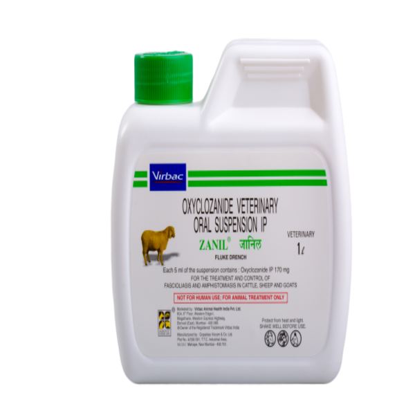 Dose : 10 mg/kg of Oxyclozanide. Drench 30 ml of ZANIL for alive weight of 100 kg and 15 ml of ZANIL'for every additional 50 kg of live weight upto a maximum of 150 ml.